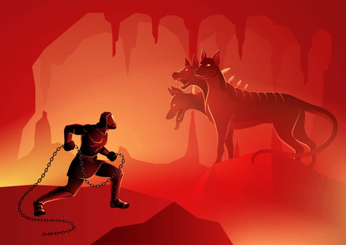 其中,海克力斯十二項不可能的任務的最後一項,把地府警衛三頭地獄犬帶回陽間,象徵出生入死都難不倒他。當然任務達成後,他又將地獄犬送回地府,但已證明地府的警備形同虛設;有趣的是,弱不禁風的美女賽姬(Psyche)也在婆婆愛神維納斯的刁難下,要她下到地獄去取冥后的美貌。愛神本以為這可讓賽姬自動人間蒸發,沒想到,她隨身只帶了一個蛋糕就輕鬆收買了地獄犬,難怪這麼多人都可以到地府瀟灑走一回。